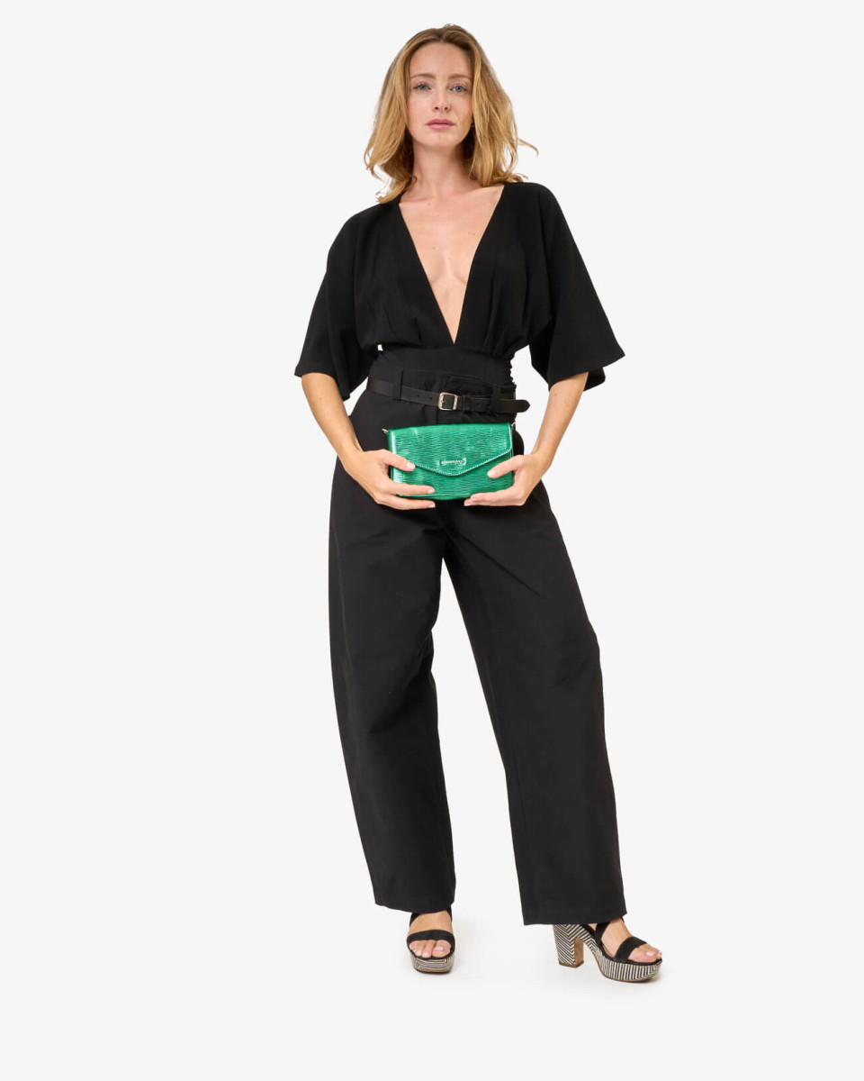 Pochette en synthétique effet glossy texturé