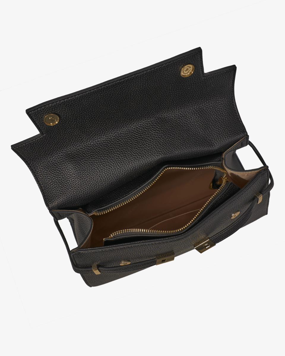 - Un compartiment principal zippé fermé par boutons pression aimantés