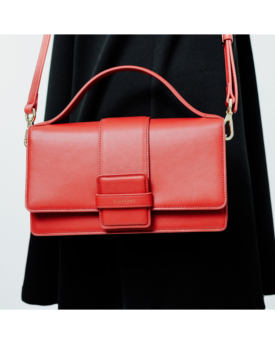 Porté main rouge en cuir de vachette lisse