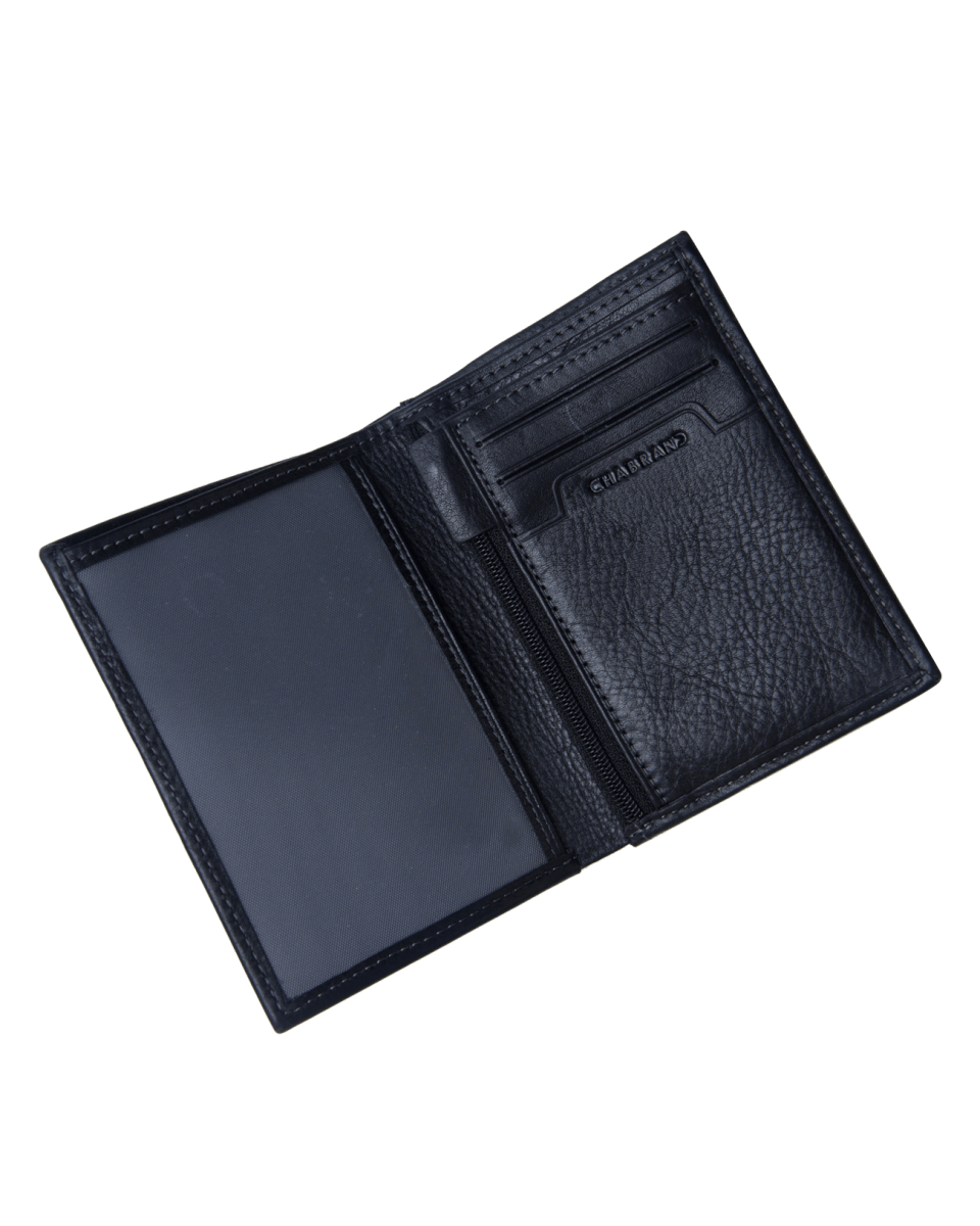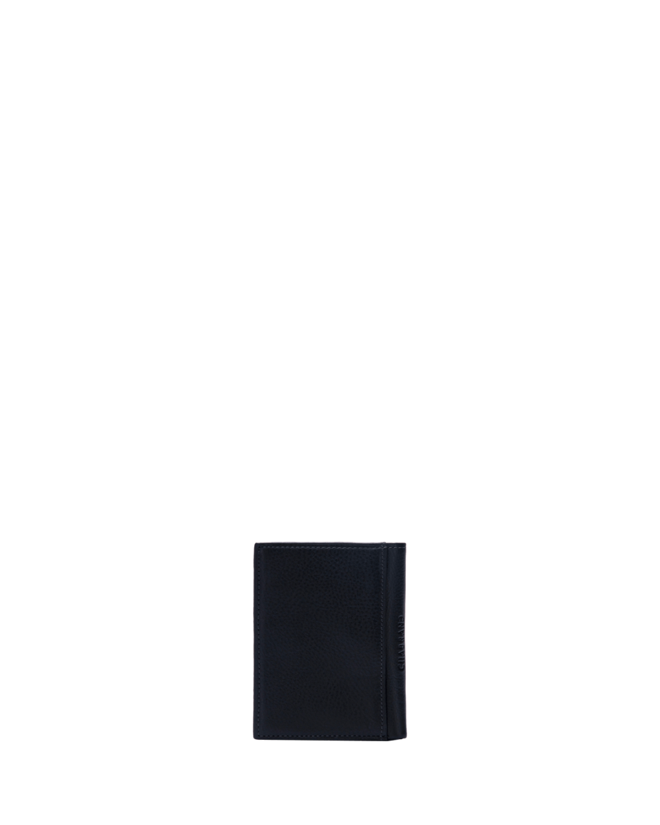 Portefeuille noir en cuir de vachette lisse
