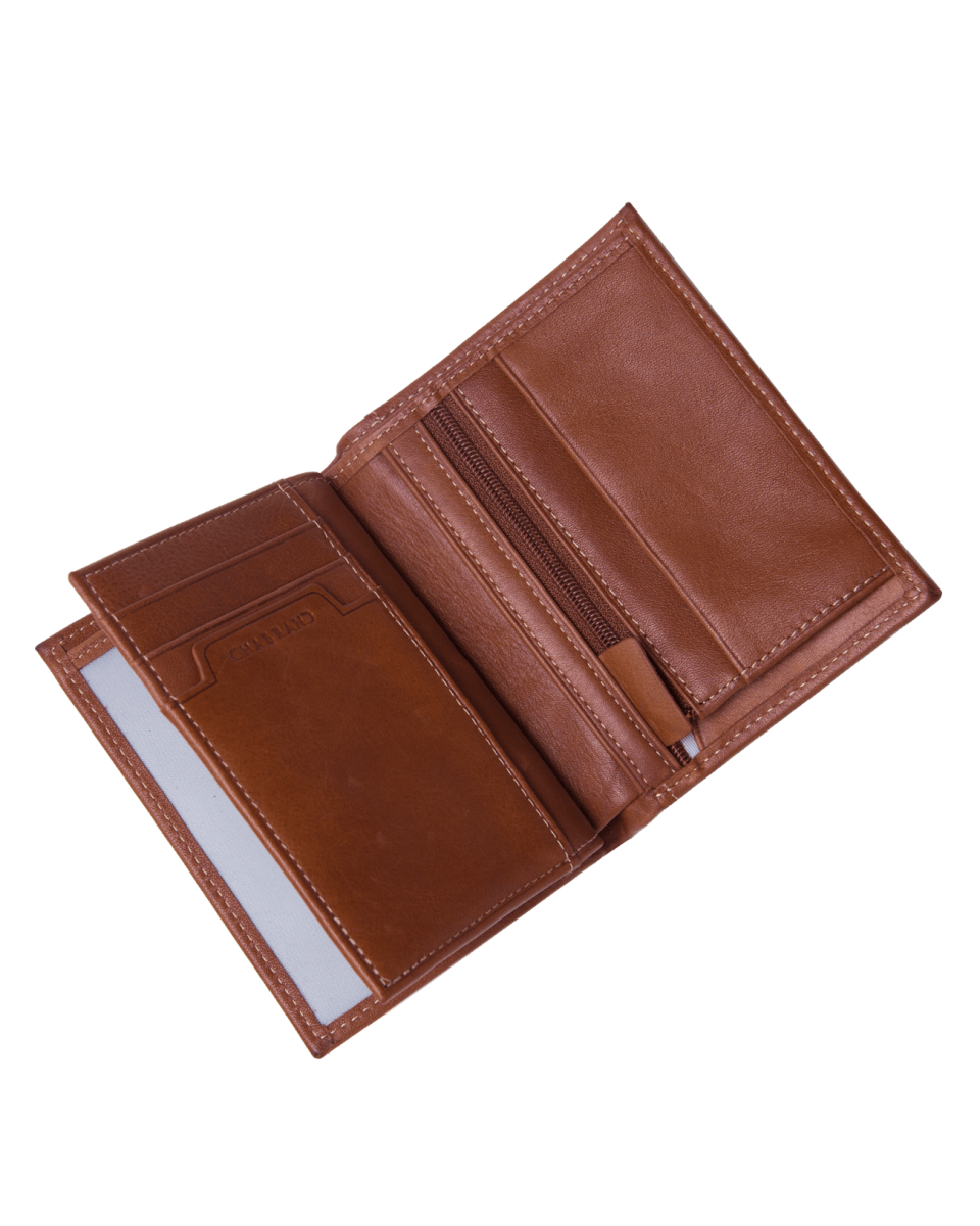 Portefeuille marron en cuir de vachette lisse
