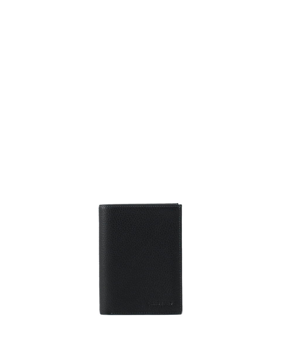 Portefeuille noir en cuir de vachette grainé