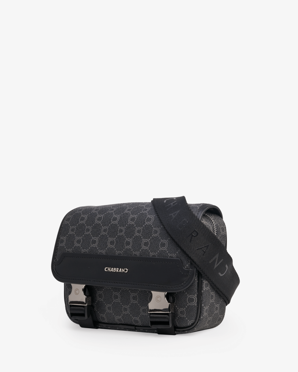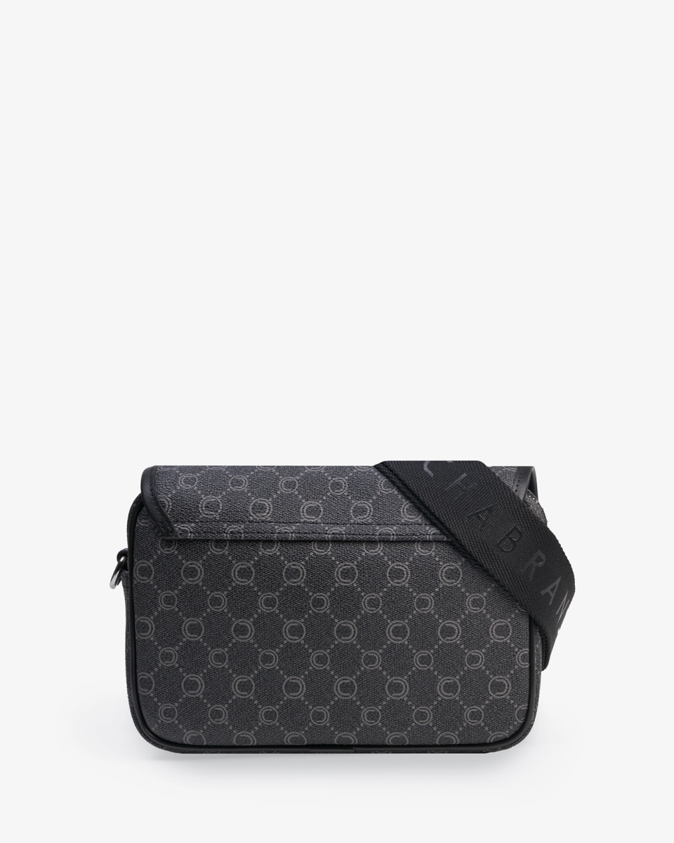Mini-sacoche noire en toile enduite siglée garnie cuir