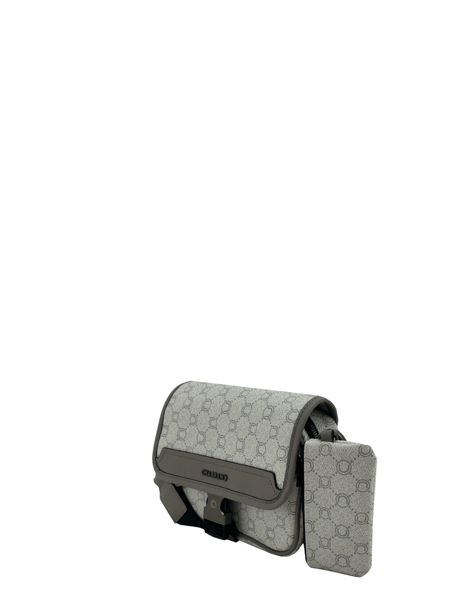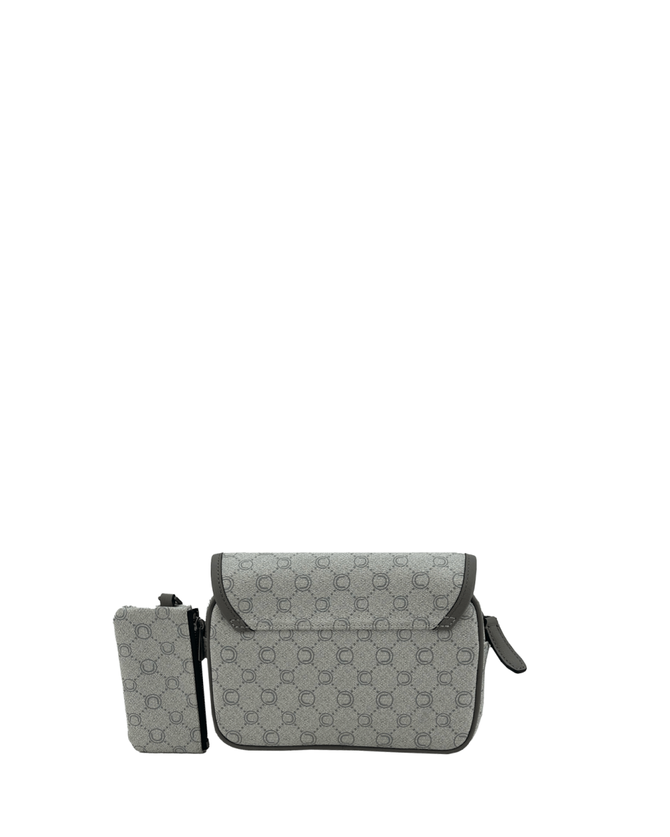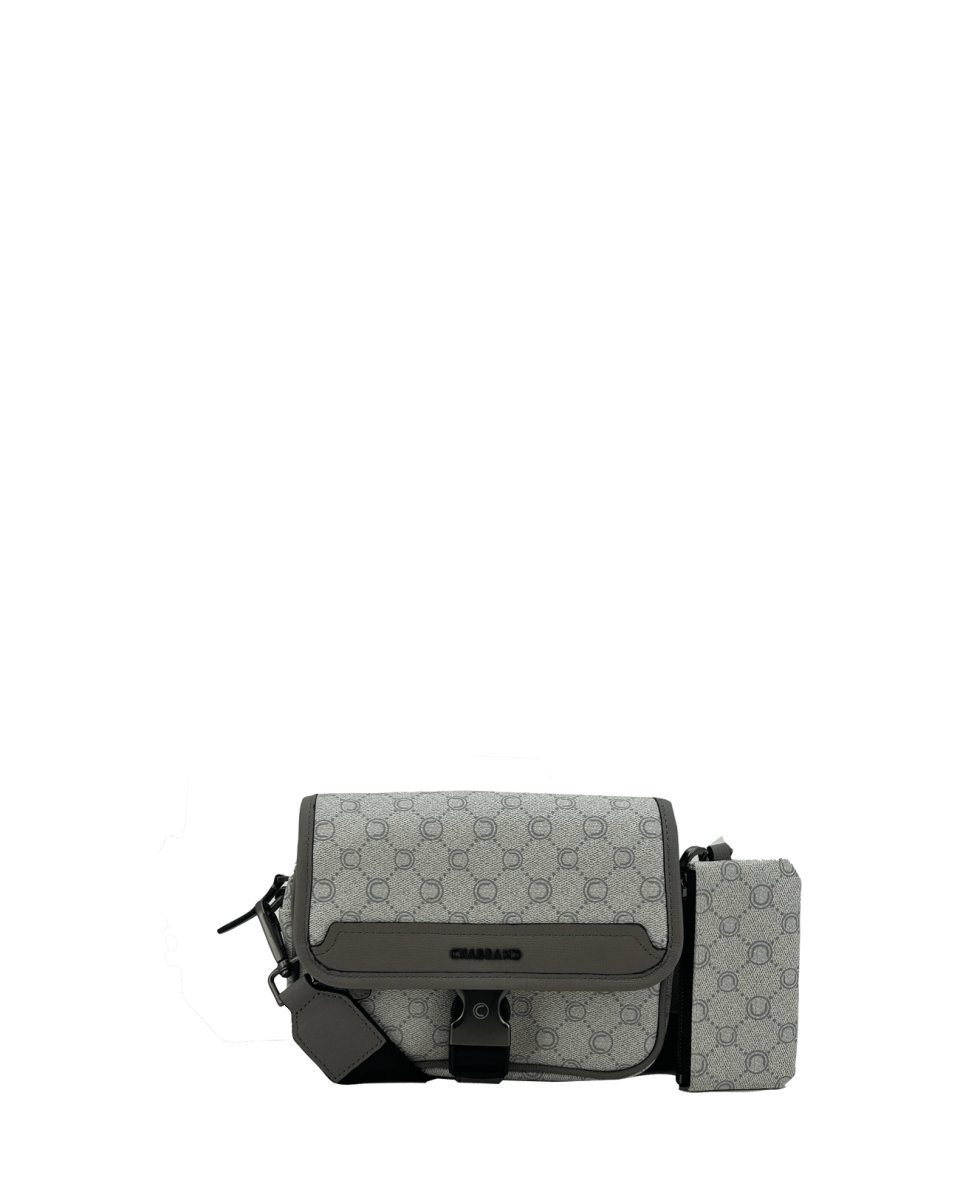 Mini-sacoche grise en toile enduite siglée garnie cuir