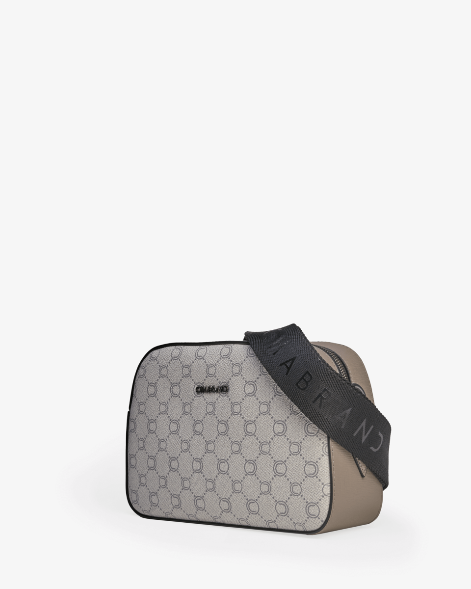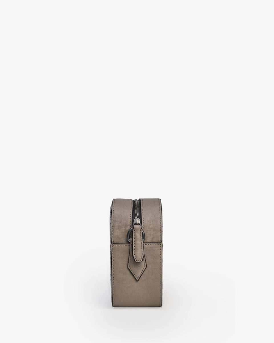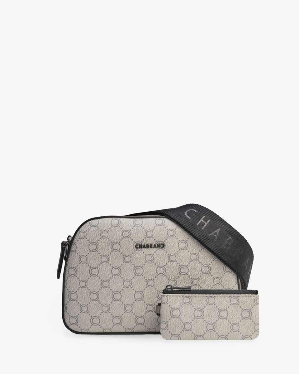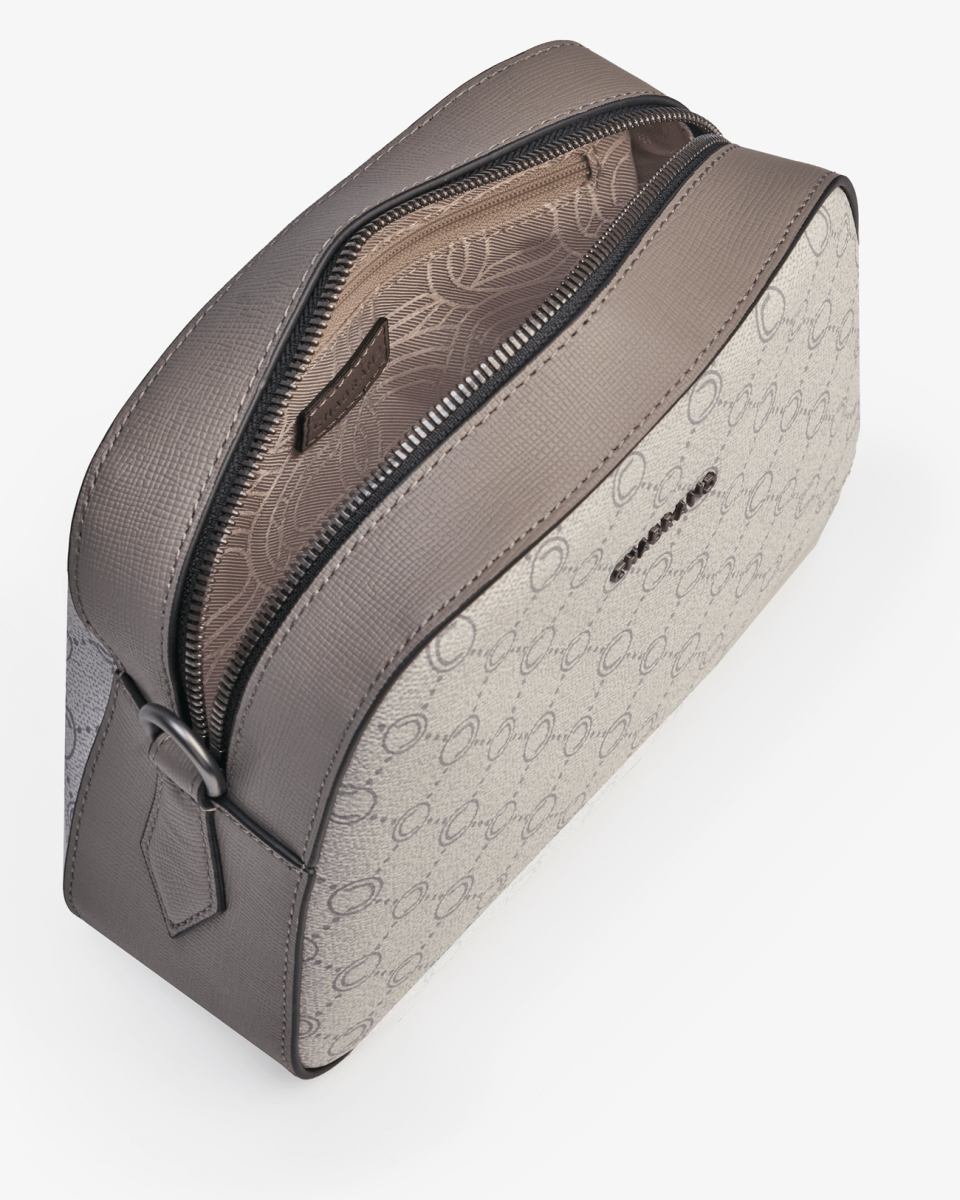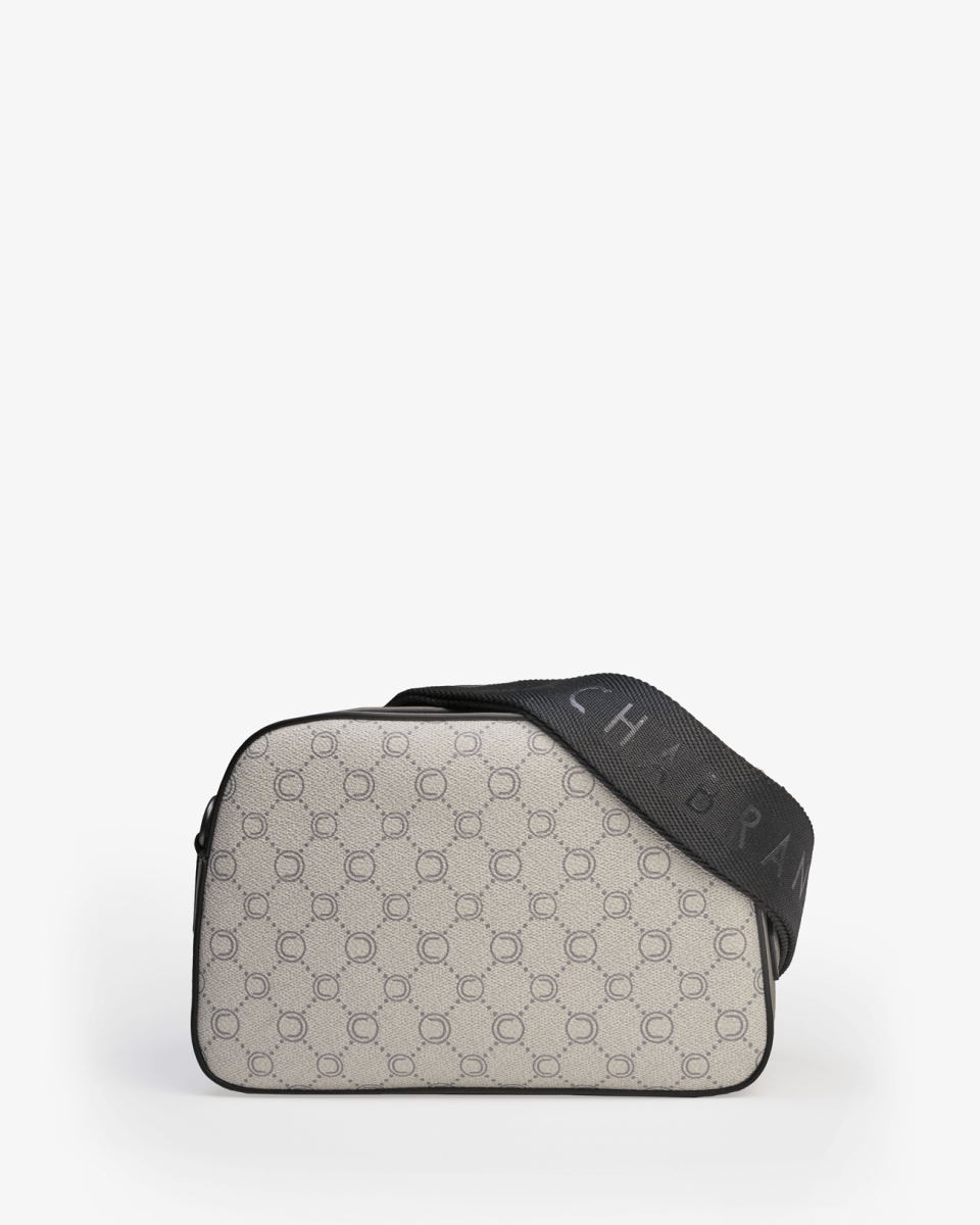 Mini-sacoche grise en toile enduite siglée garnie cuir