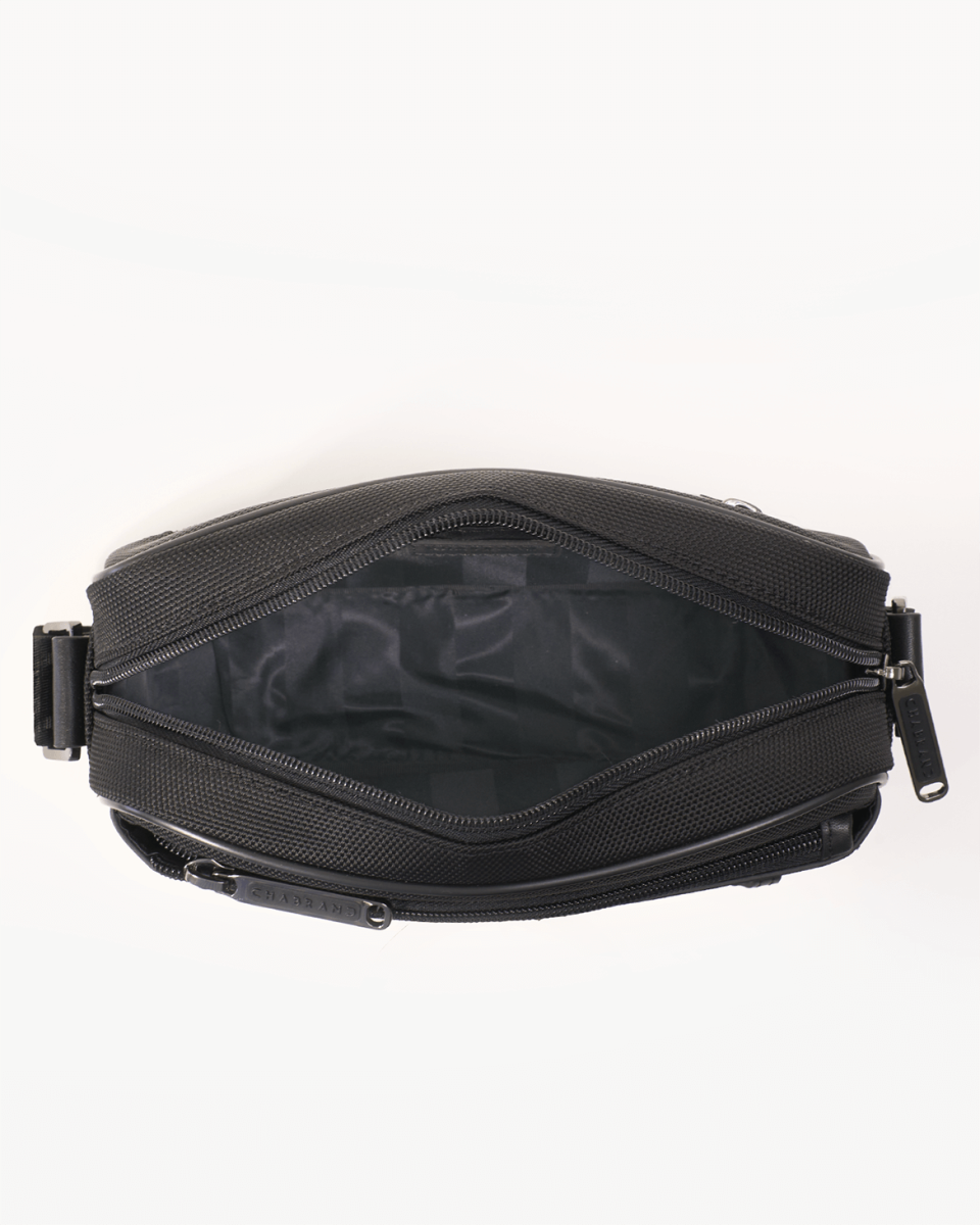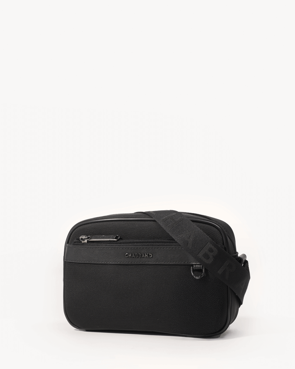 Mini-sacoche noire en toile garnie cuir lisse