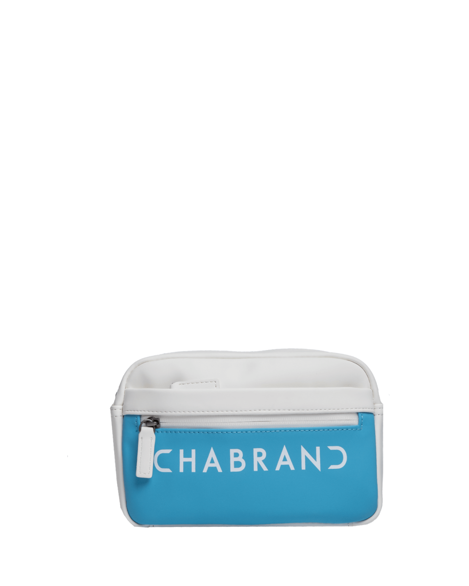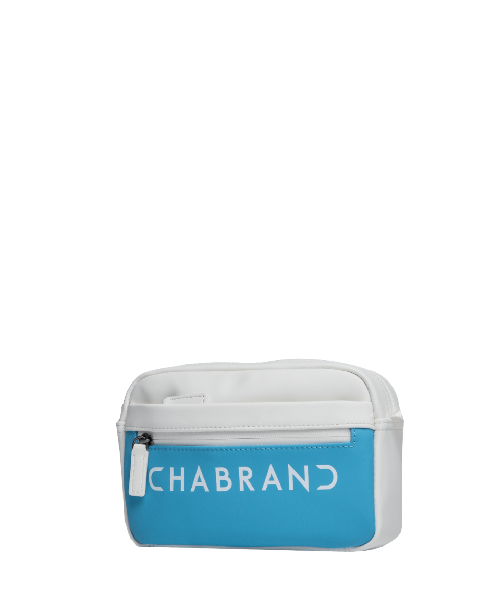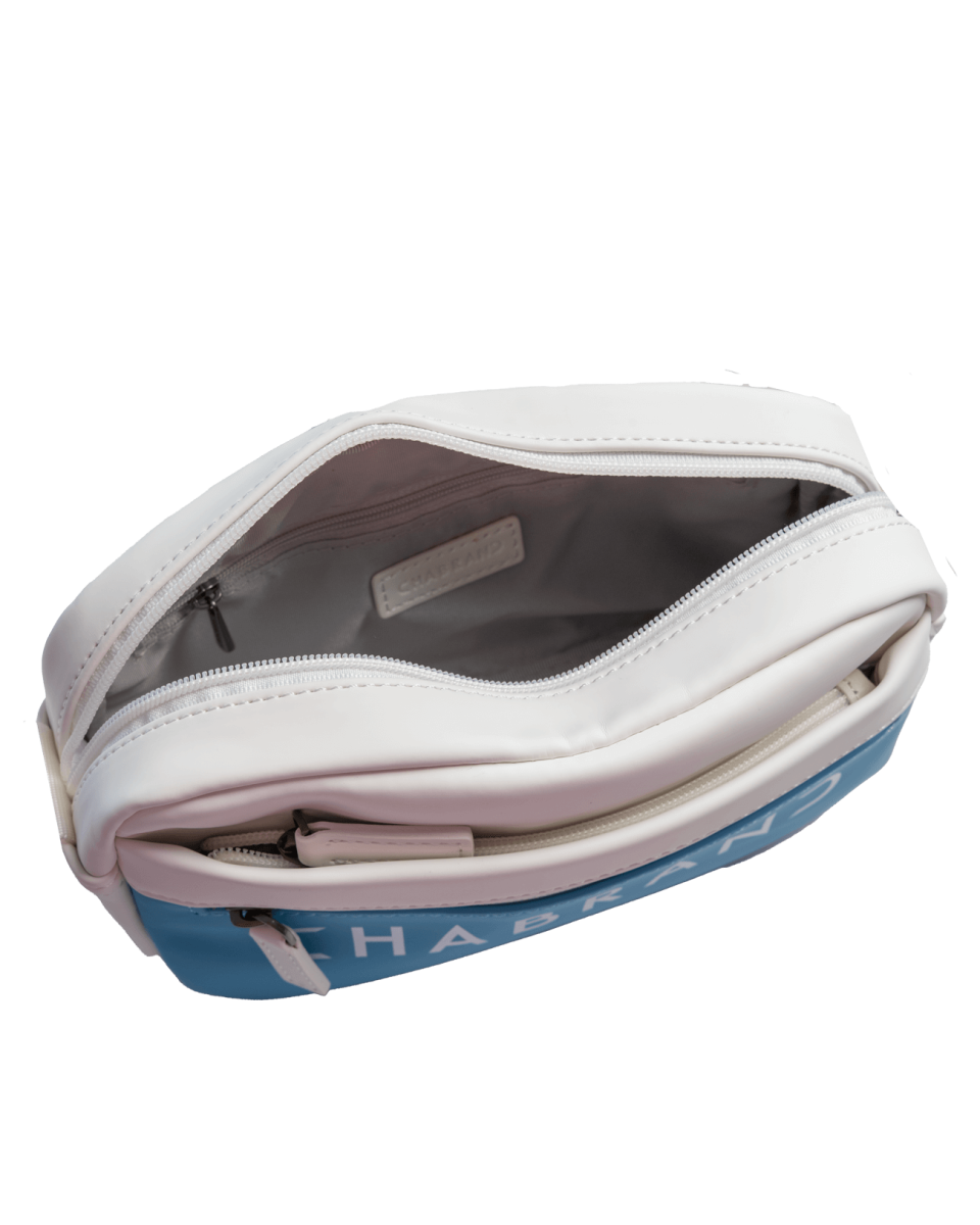 Mini sacoche blanche et bleu en synthétique touché peau de pêche