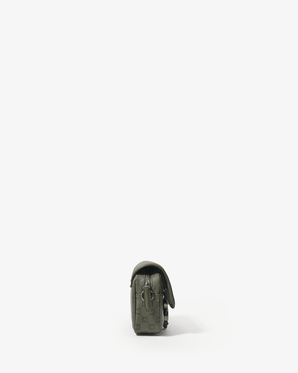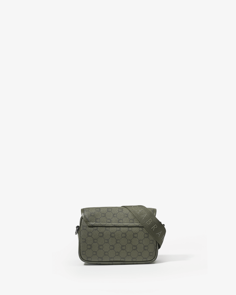 Mini-sacoche kaki en toile enduite siglée garnie cuir