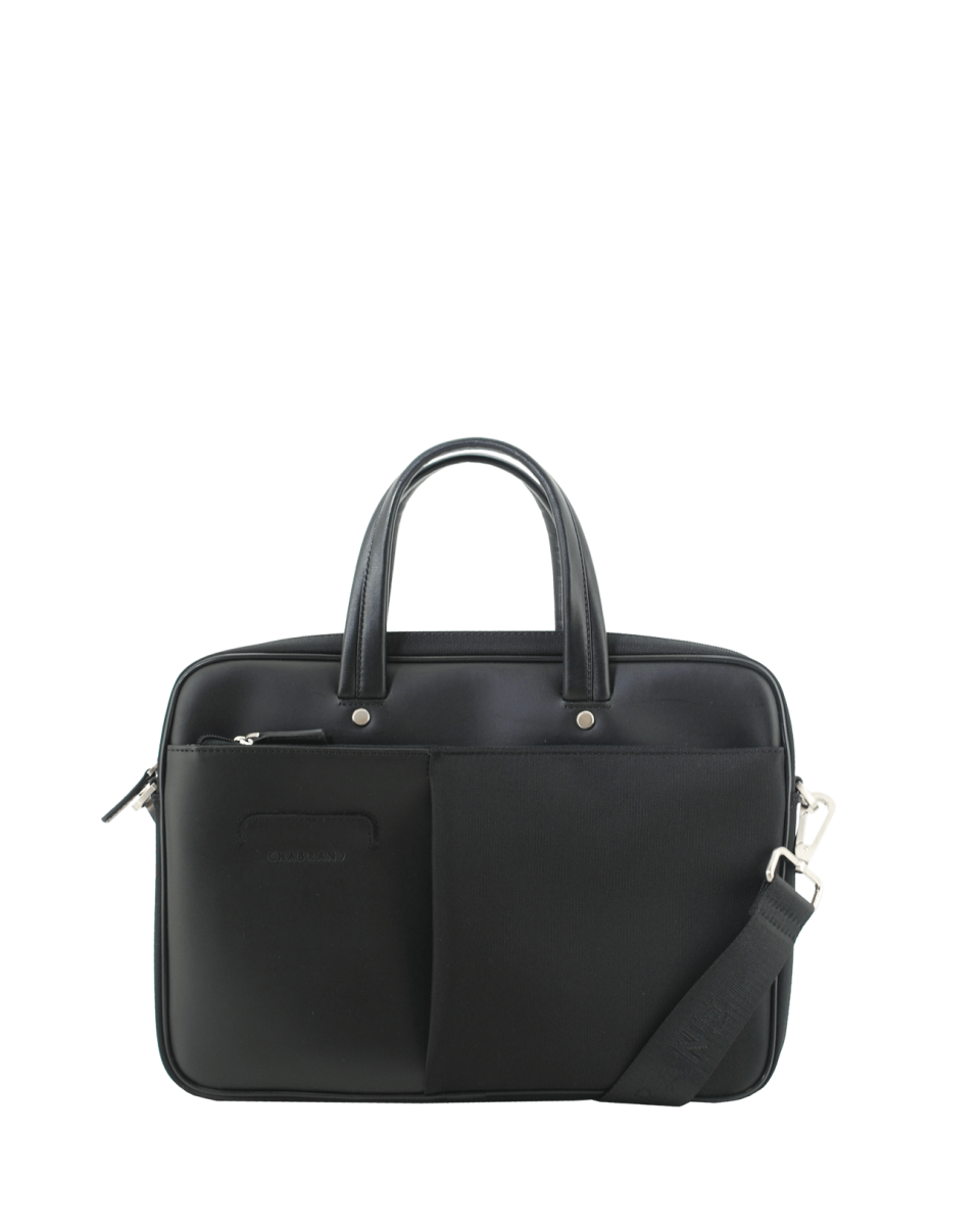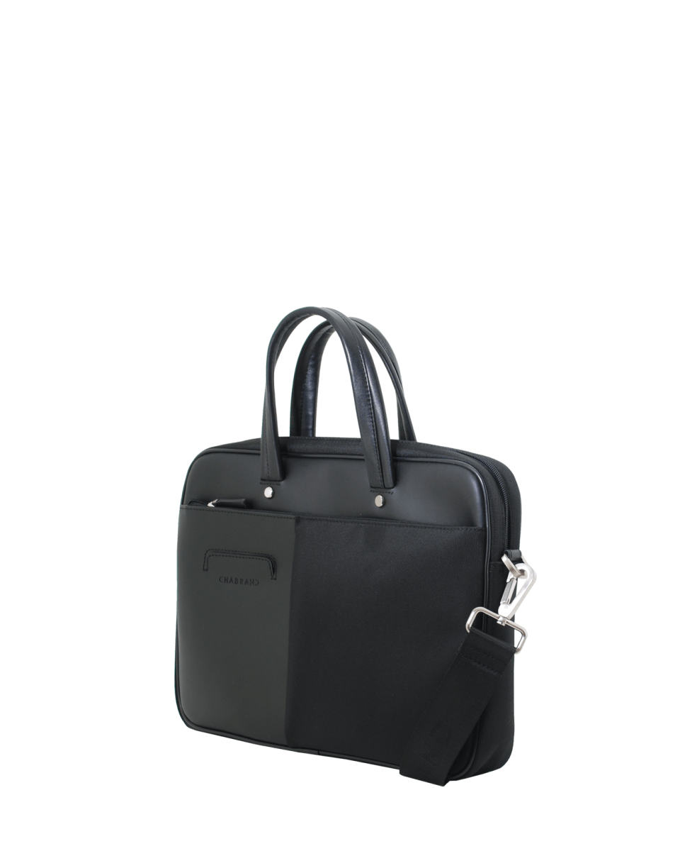 Porte-documents noir en toile garnie cuir