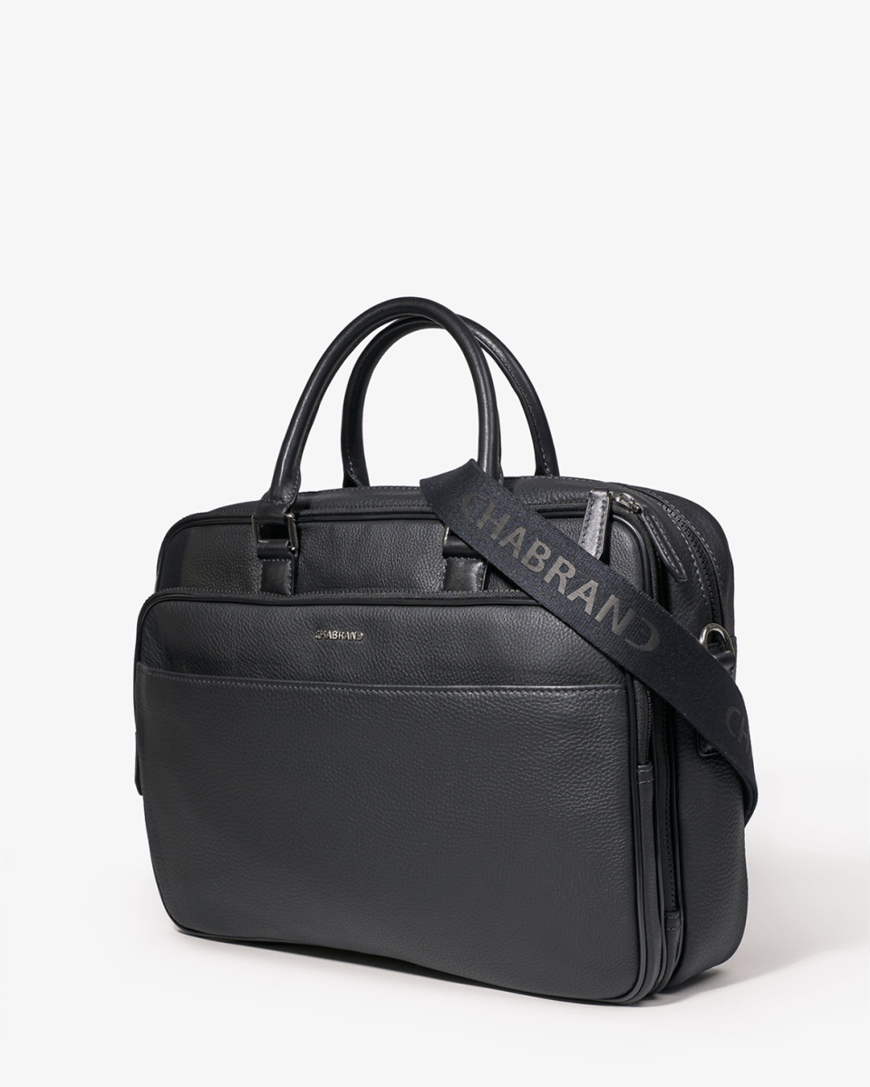 Porte-documents noir en cuir de vachette grainé