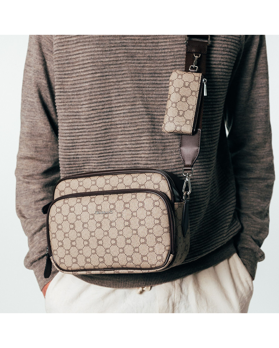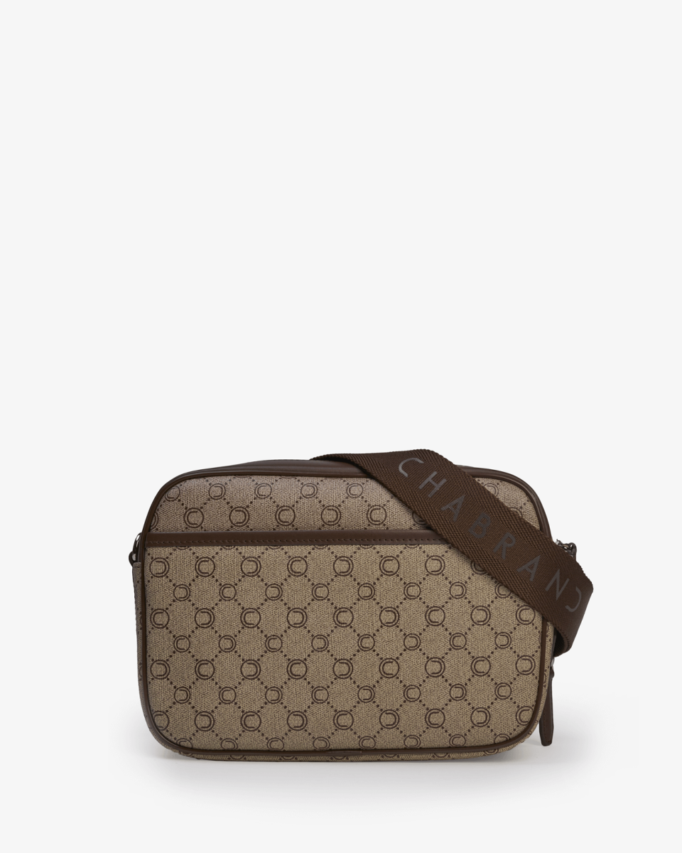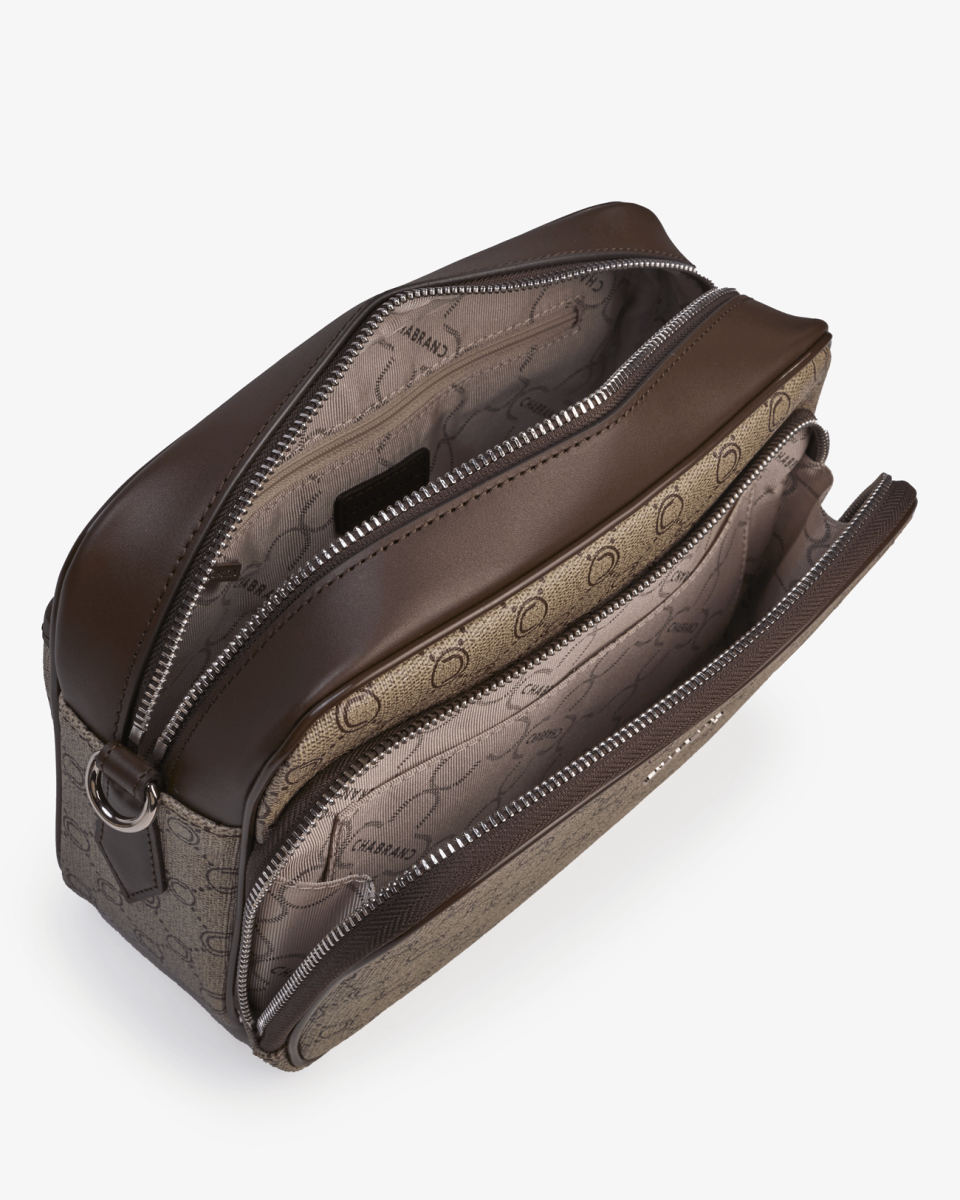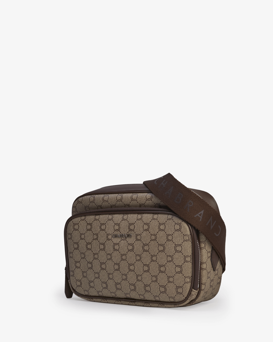 Mini sacoche marron en toile enduite siglée garnie cuir