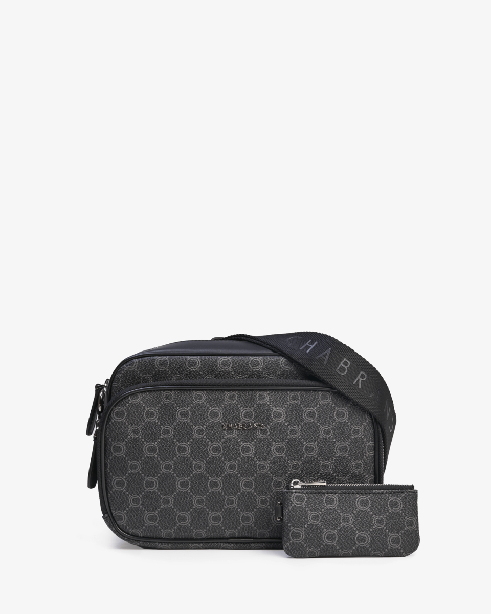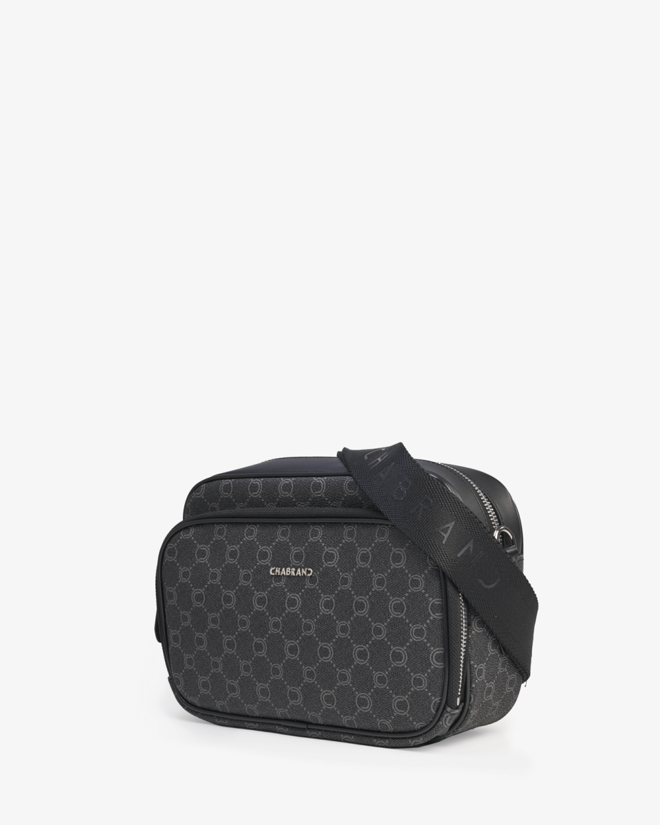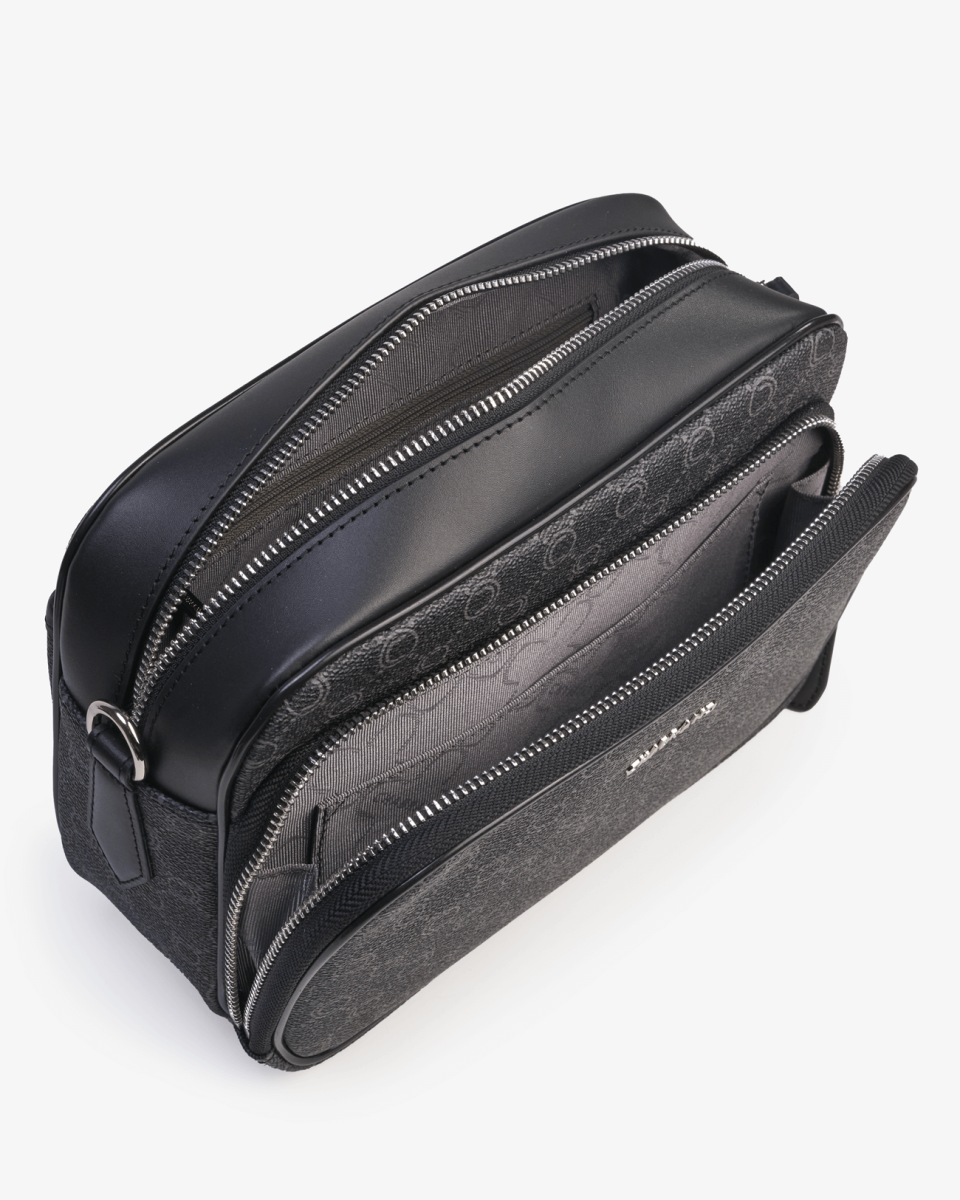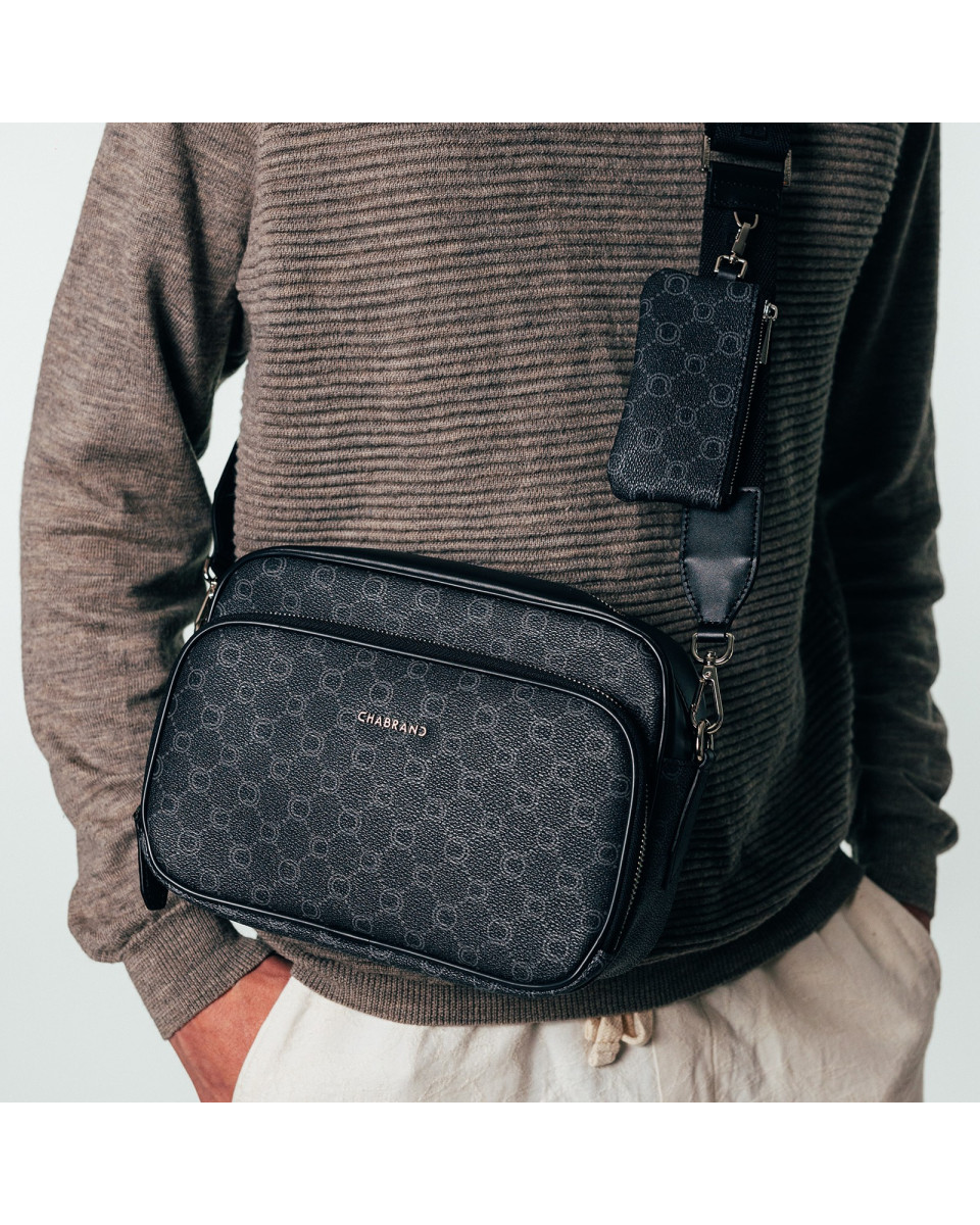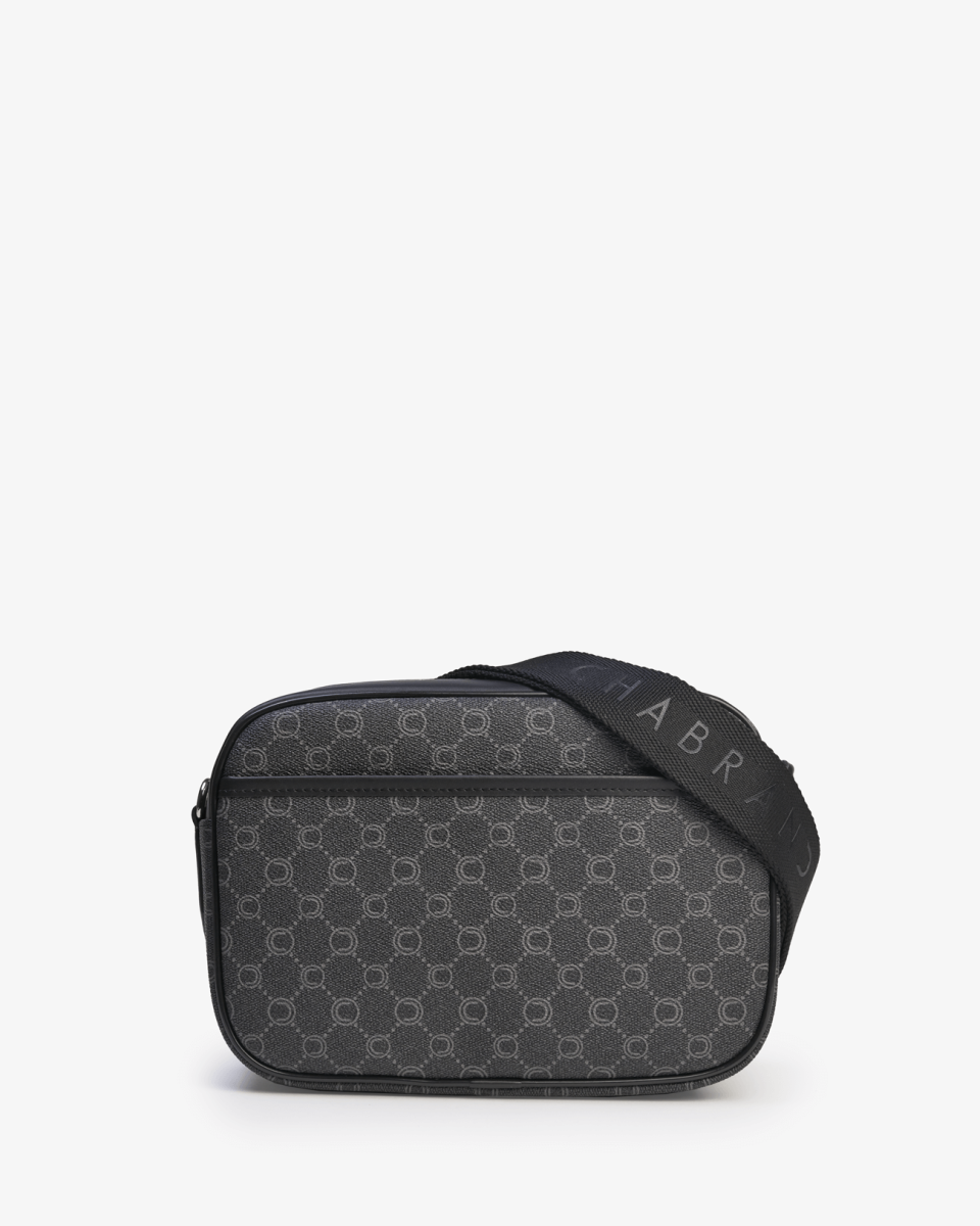 Sacoche en toile enduite siglée garnie cuir avec finitions métalliques anthracites