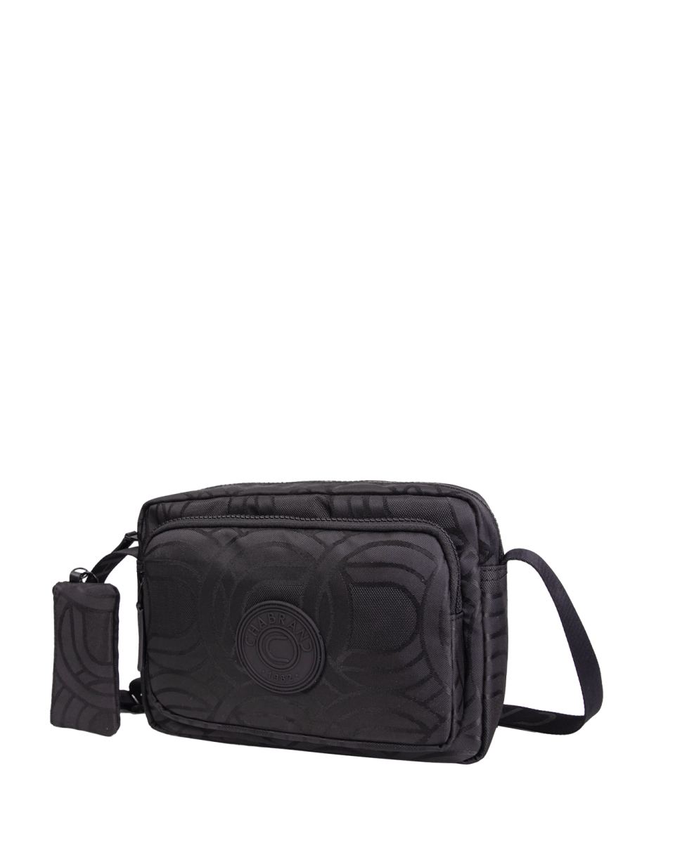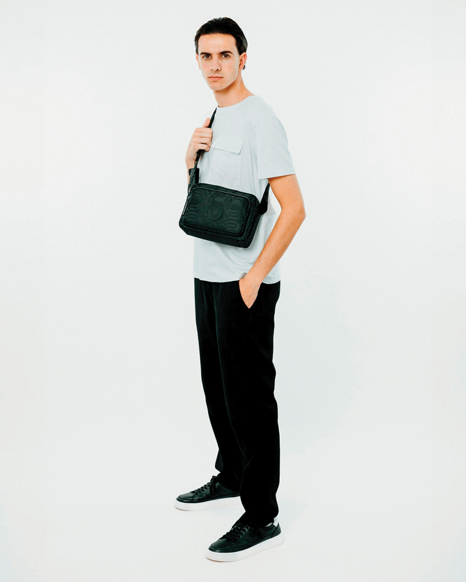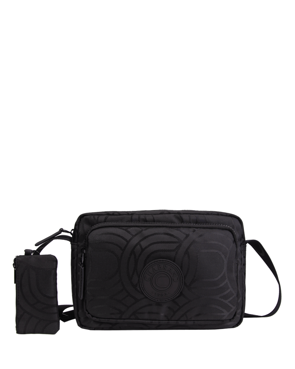 Sacoche noire en toile monogrammée