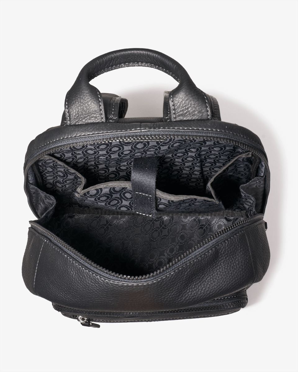 Sac à dos noir en cuir de vachette grainé