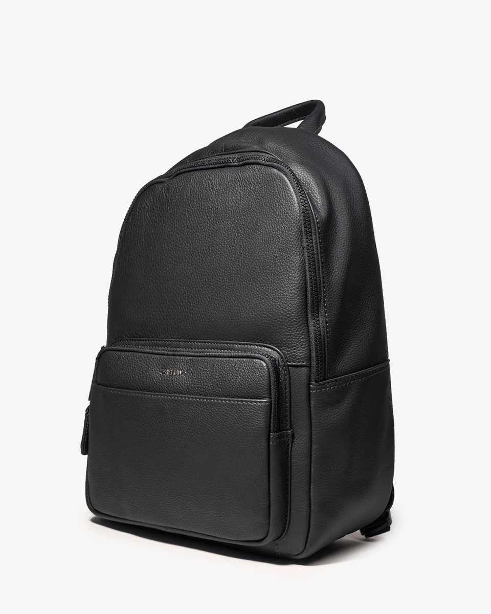 Sac à dos noir en cuir de vachette grainé