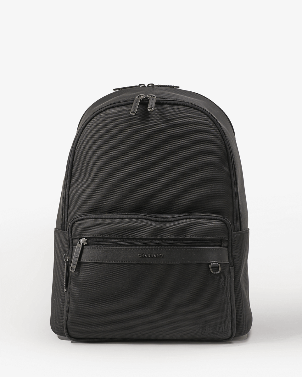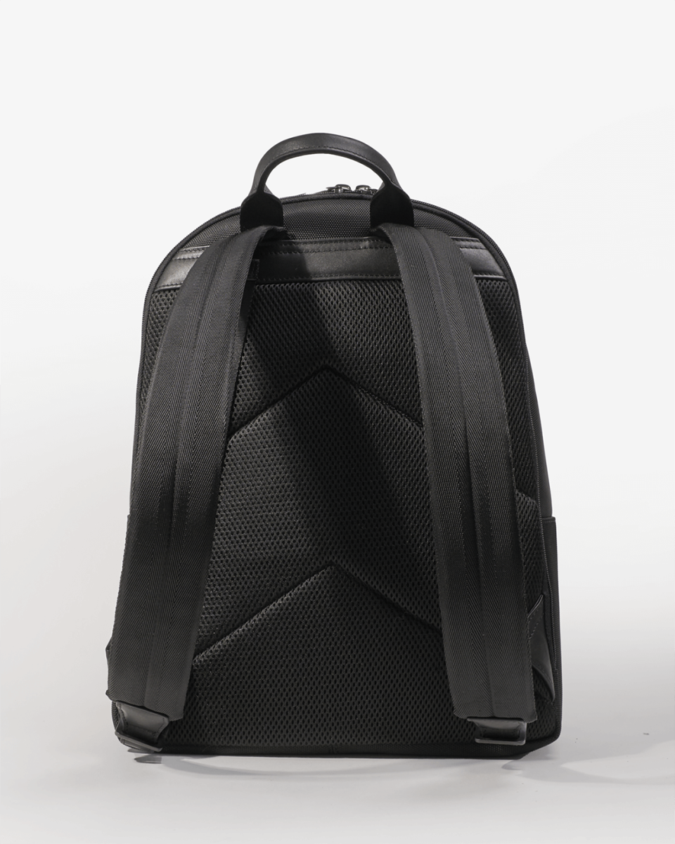 Sac à dos noir en toile garnie cuir lisse