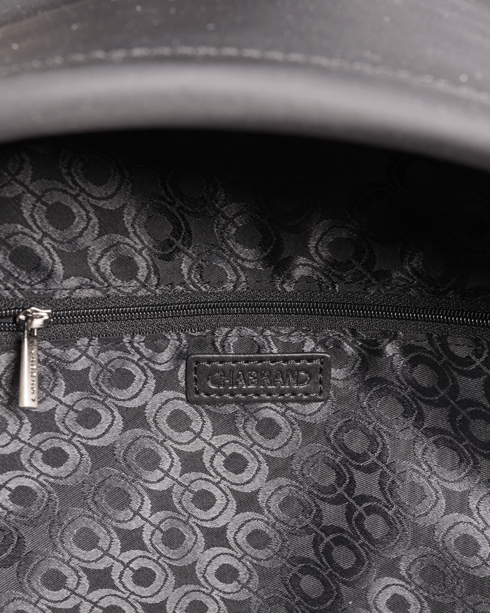 - Trois poches plaquées dont une zippée à l'intérieur
